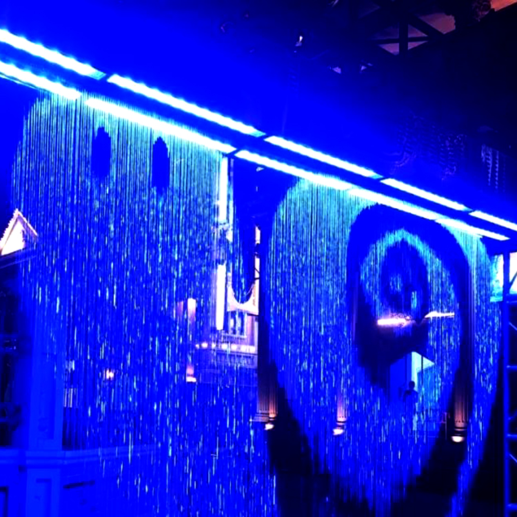 投影数字水幕是一种可以出文字图案的水景设备,这种水景设备不仅可以模仿逼真的瀑布和雨的效果,还可以作为演示、表演、观赏或加上投影幕来使用,成为视频元素中的流动载体。